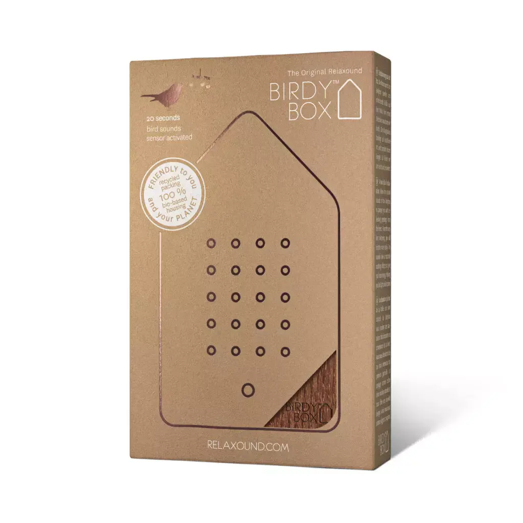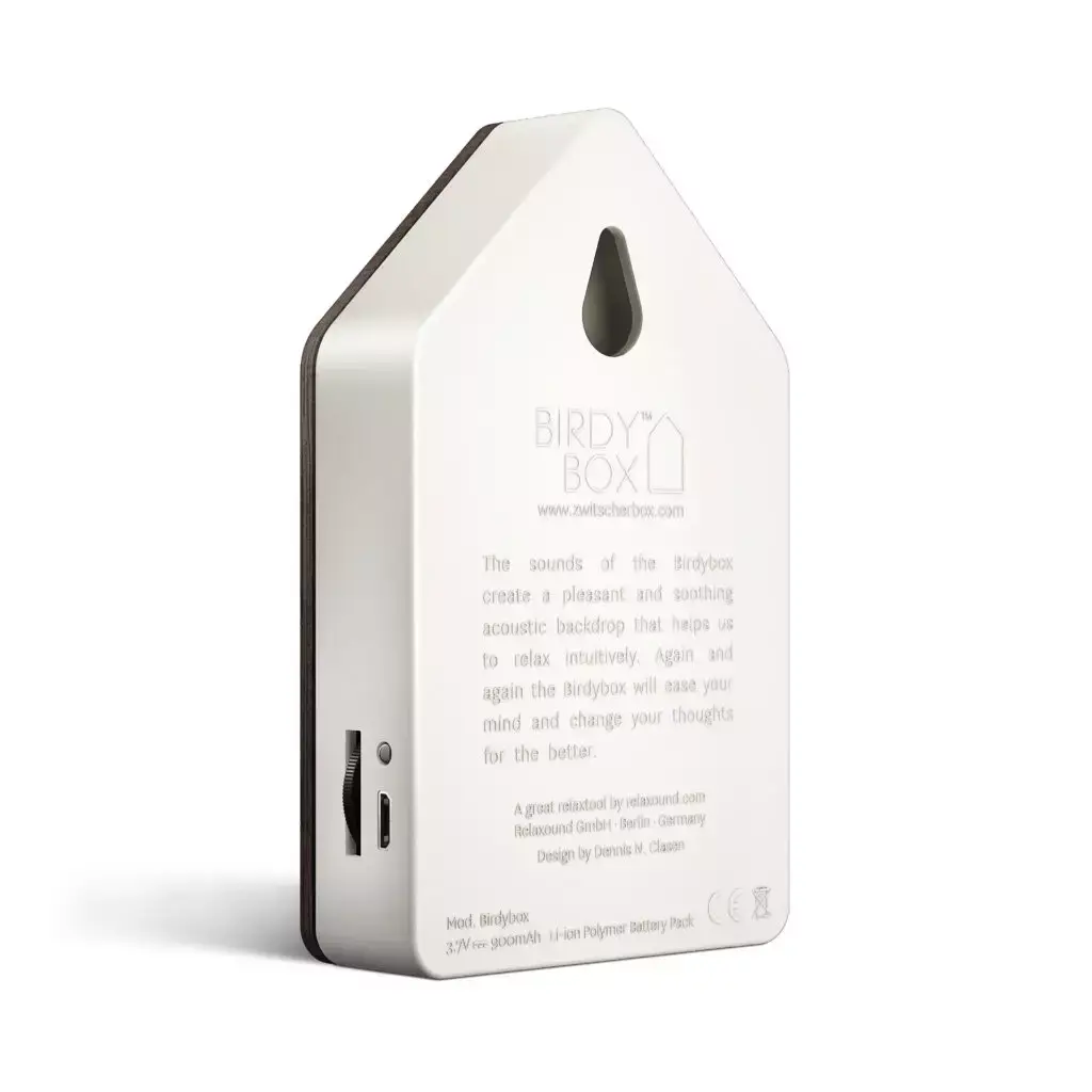 La Birdybox de la marque relaxound est une boîte à chants d'oiseaux qui apporte une ambiance naturelle et apaisante à votre espace. Fabriquée en bois de chêne de haute qualité, elle ajoute une touche d'élégance et de chaleur à votre décor.