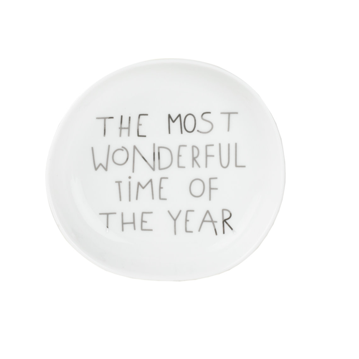 Une petite coupelle avec un joli message couleur argent : "the most wonderful time".