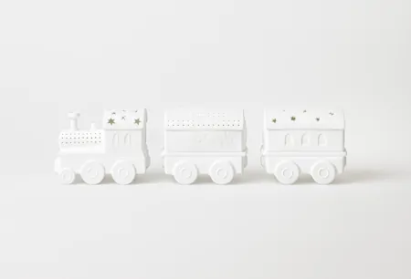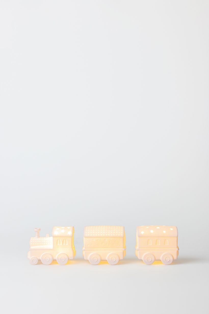 Apportez une touche féérique à votre intérieur avec le train lumineux Räder en porcelaine mate. Composé d’une locomotive et de deux wagons délicatement décorés à la main, il diffuse une lumière douce et chaleureuse, idéale pour créer une ambiance de Noël pleine de poésie.