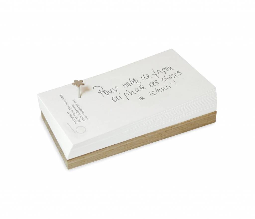 Orné d'un joli clou en forme de fleur pour retenir les feuilles de papier blanc, écrivez vos pensées, messages et listes afin de ne rien oublier. Singulier et très décoratif avec sa première page illustrée d'un doux message et son support en chêne naturel. Voilà une belle idée cadeau, poétique pour embellir le quotidien.