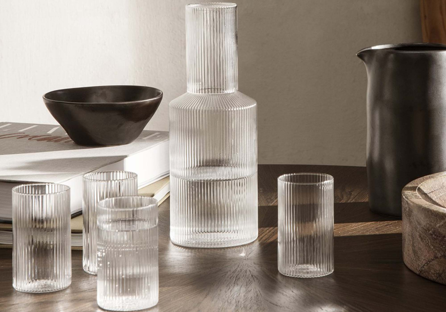 Élégantes et graphiques, les verrines Ripple de Ferm Living apportent une touche contemporaine à votre table. Leur design nervuré, à la fois chic et intemporel, sublime vos desserts, amuse-bouches ou boissons avec finesse.